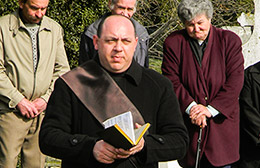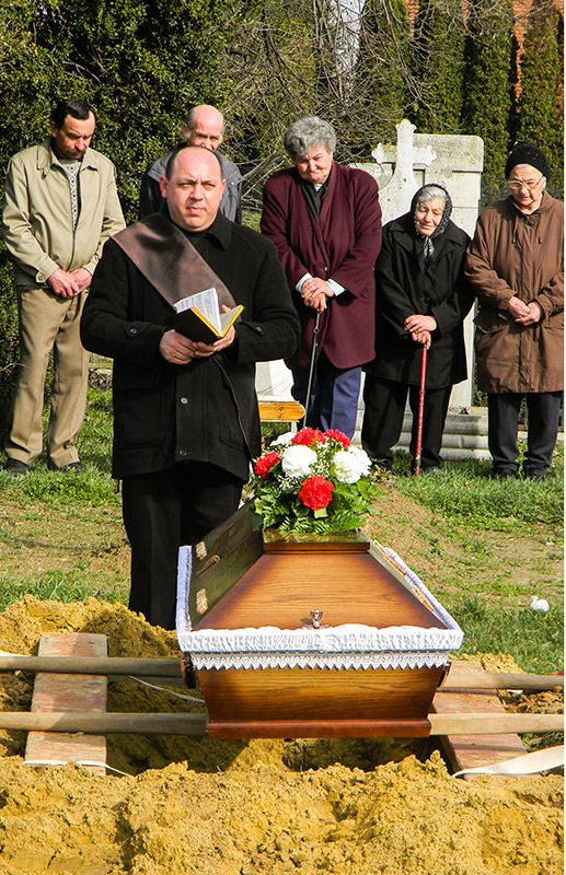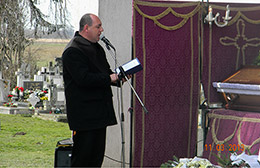 5. A koszorúk elhelyezése után a szónok, majd a gyászoló közönség a családnak részvétet nyilvánít.